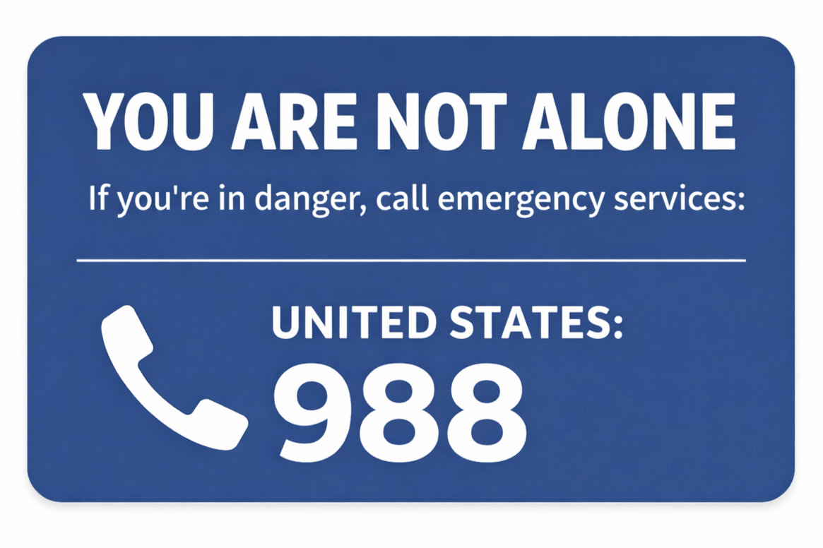This article discusses suicidal thinking and emotional crisis in an educational way. If you feel like you might harm yourself call your local emergency number right now or contact a crisis line in your country. If you are in the United States you can call or text 988 Suicide and Crisis Lifeline.
