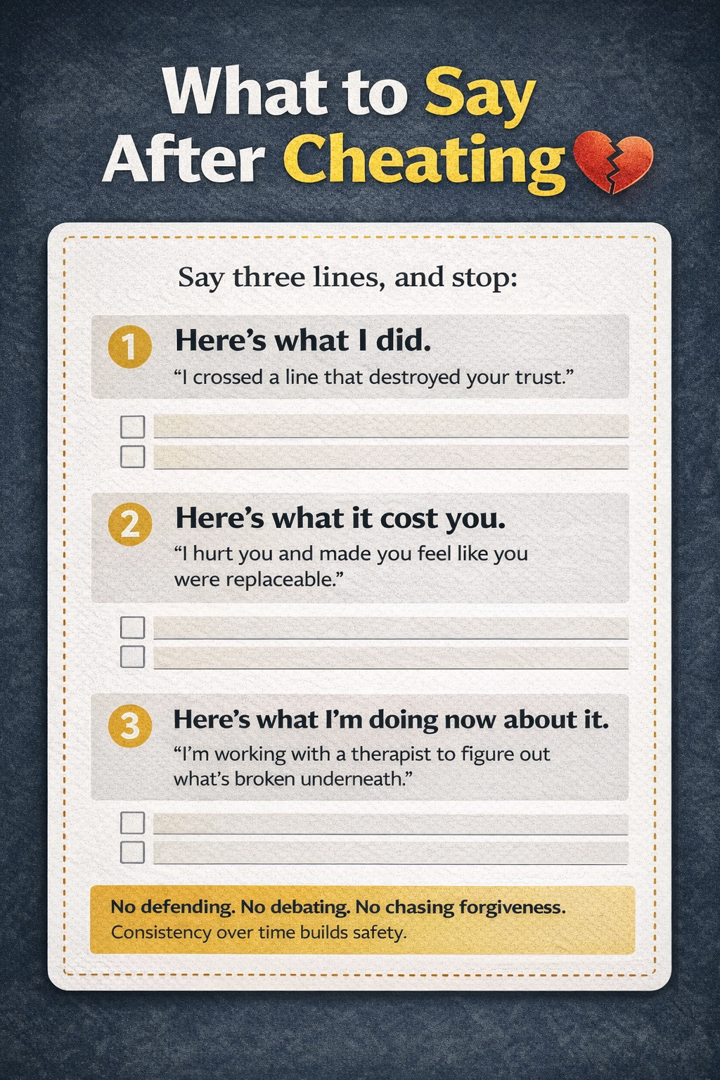 Step 3: What to say after cheating (an accountability script that lowers chaos)